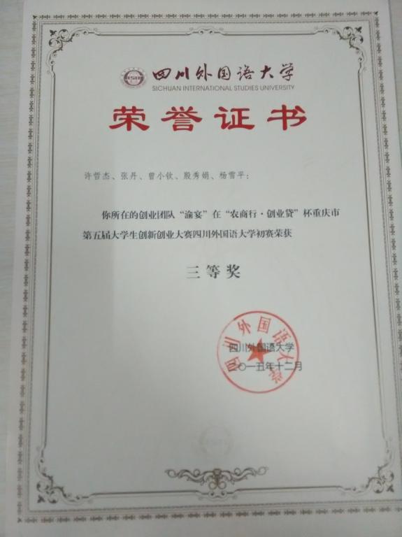 (农商行杯重庆市创业大赛获奖证书)
